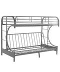 The Troy triple bunk in grey metal is a space-saving essential for shared bedrooms—strong, safe, and stylishly compact.