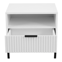 The Carrie One Drawer Bedside Table combines style and functionality, offering a sleek modern look with practical storage. Perfect for keeping essentials within reach while elevating your bedroom décor.