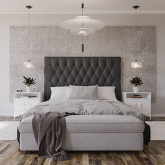 Deep Buttoned Charcoal Double Headboard