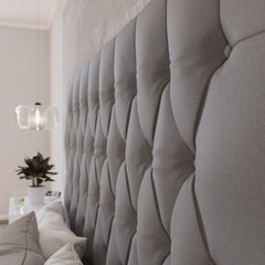 Deep Buttoned Grey King Headboard