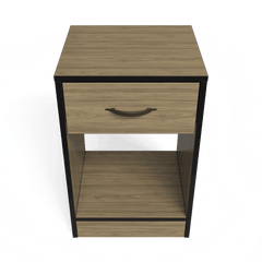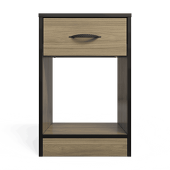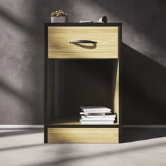 One smooth-gliding drawer for discreet storage of nighttime essentials