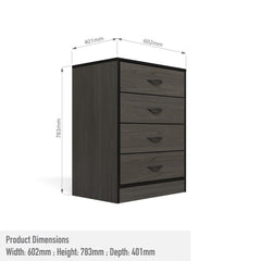 Four generously sized drawers for ample storage of clothing, accessories, linens, and more