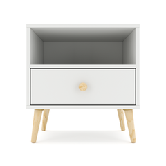 Unfinished rustic pine legs add a natural, grounded aesthetic