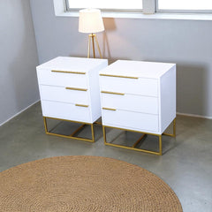 Elevate your bedroom aesthetic with the Pro White Pedestal, featuring a gleaming gold-foil finish—an exquisite blend of minimalist white with luxurious metallic detailing.